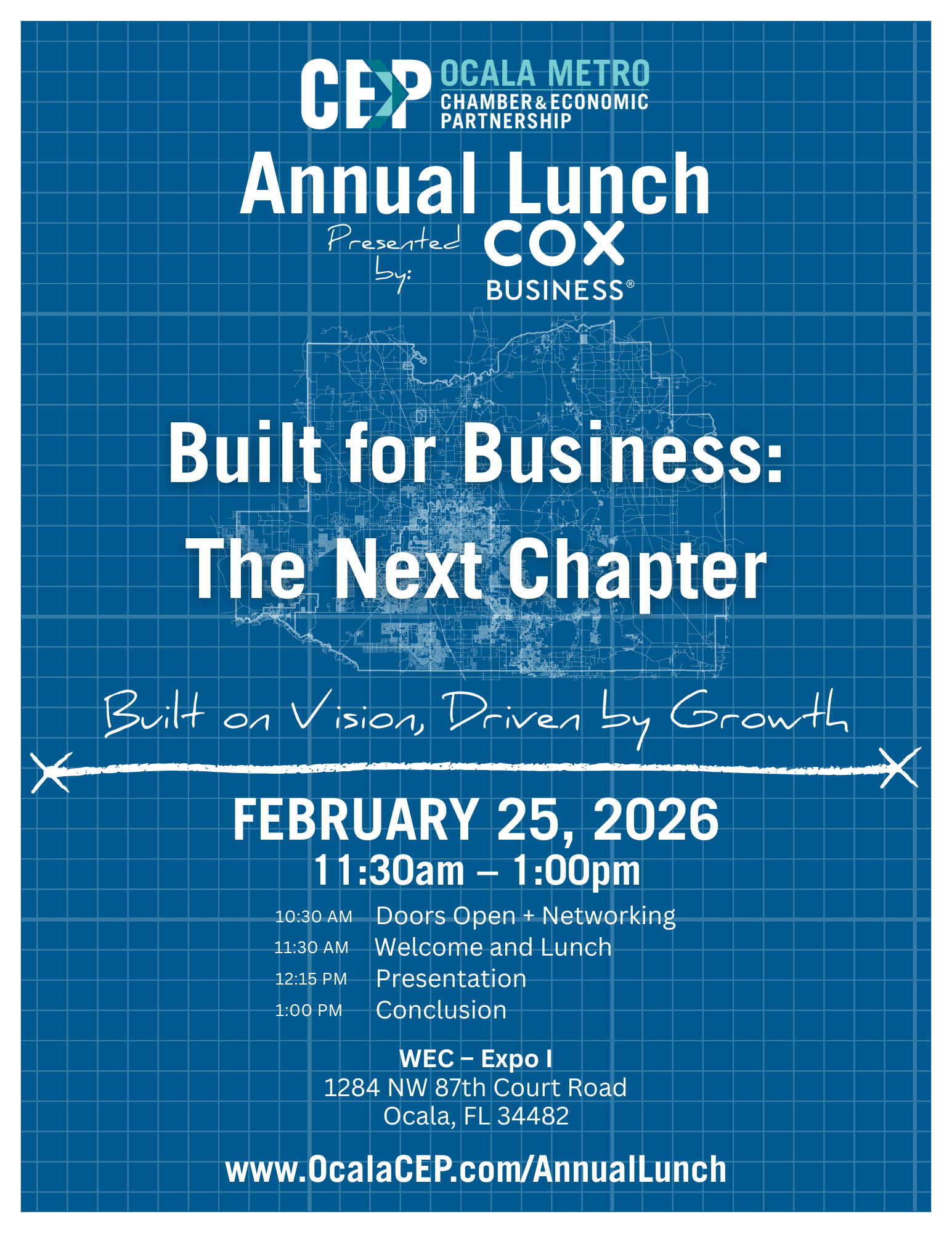 NOTE: Founders Club, Chairman's Circle, Champion, and Leadership have seats available through their partnership. Please contact Andrea@OcalaCEP.com to confirm your seats.