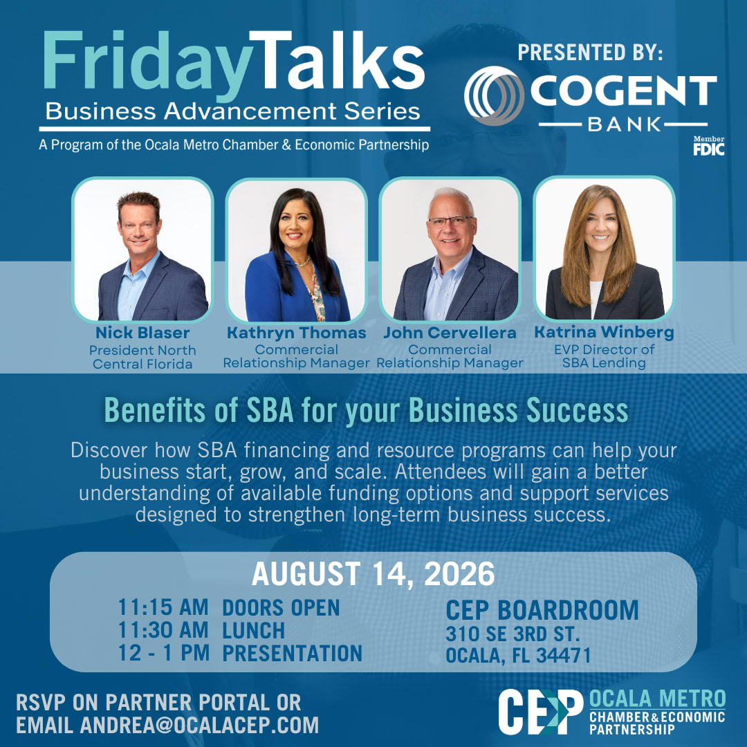 Join us for Friday Talks Lunch and Learn Series sponsored by Cogent Bank.