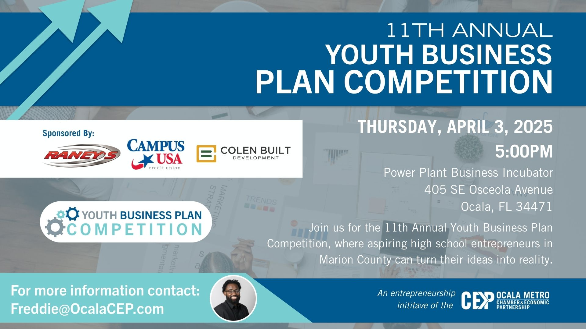 11th Annual Marion County Youth Business Plan Competition, where we encourage the youth to officially join Ocala’s entrepreneurial community by creating a NEW business plan based on their Company Idea here in Marion County FL.